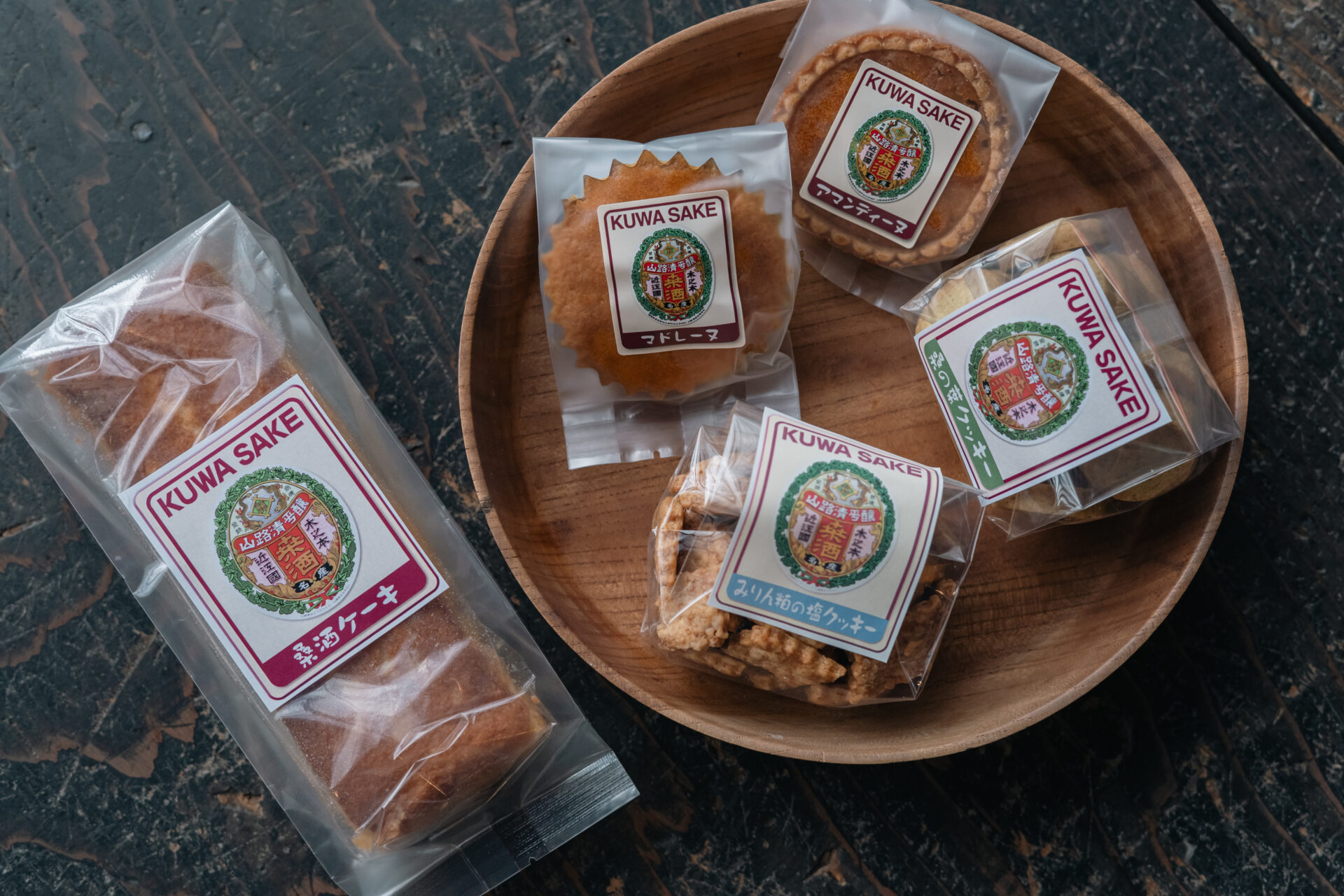 マドレーヌやアマンディーヌは桑酒のやさしい甘さが絶妙で、桑酒を入れてから焼いてあるため子どもも食べやすい商品。桑酒をつくる際にできる「みりん粕」を使った塩クッキーは、おやつとしてはもちろん、ほんのりチーズクラッカーのような風味からお酒のおつまみとしてもgood!
