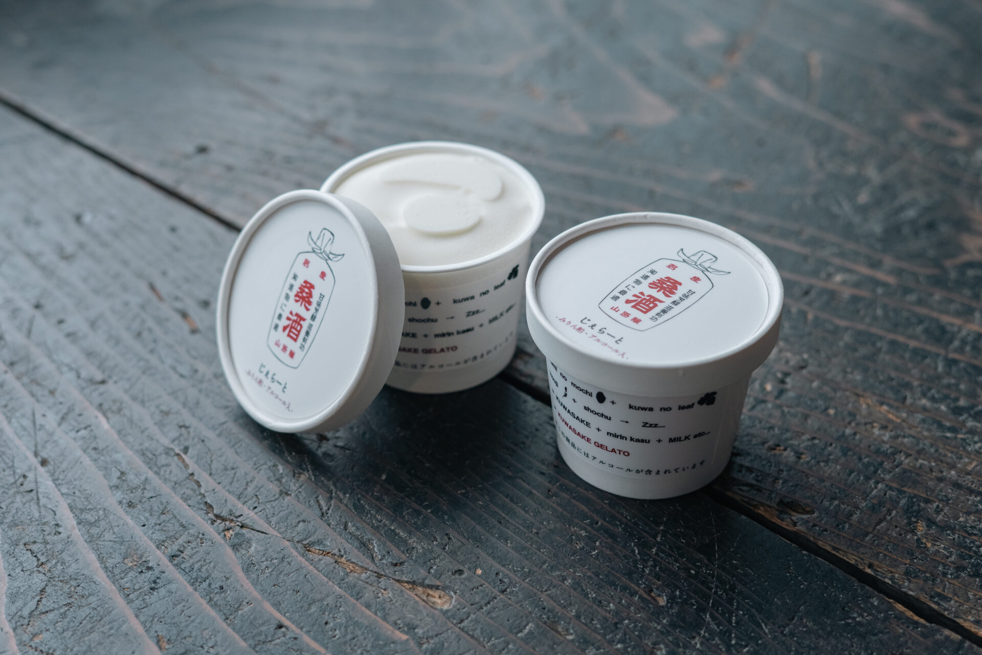 5,6年くらい前から販売しているのが桑酒ジェラート。よく見かける酒粕のジェラートではなく、日本で唯一の桑酒の味わいをより生かせるようにと“桑酒のジェラート”をつくることにしたといいます。