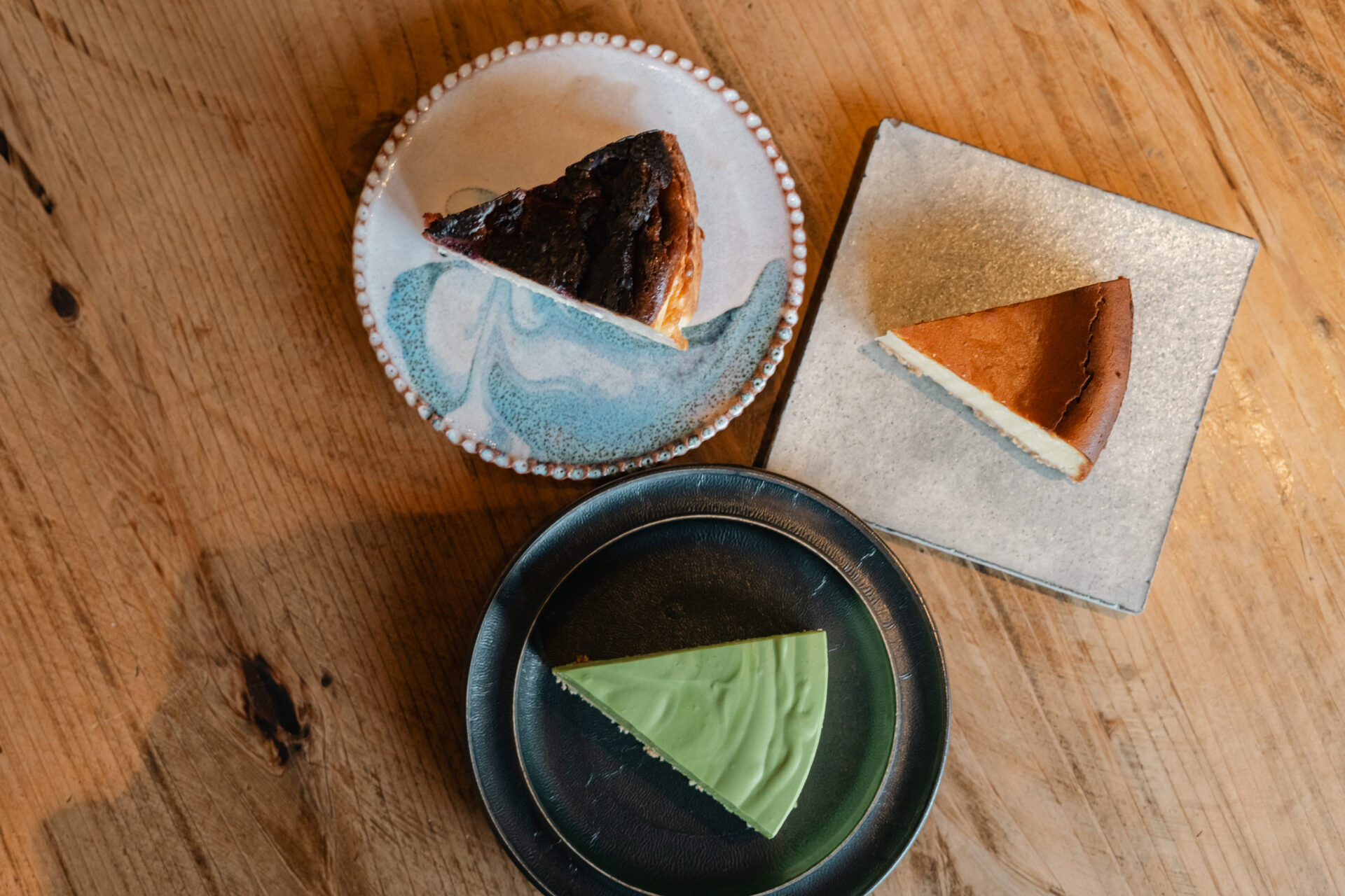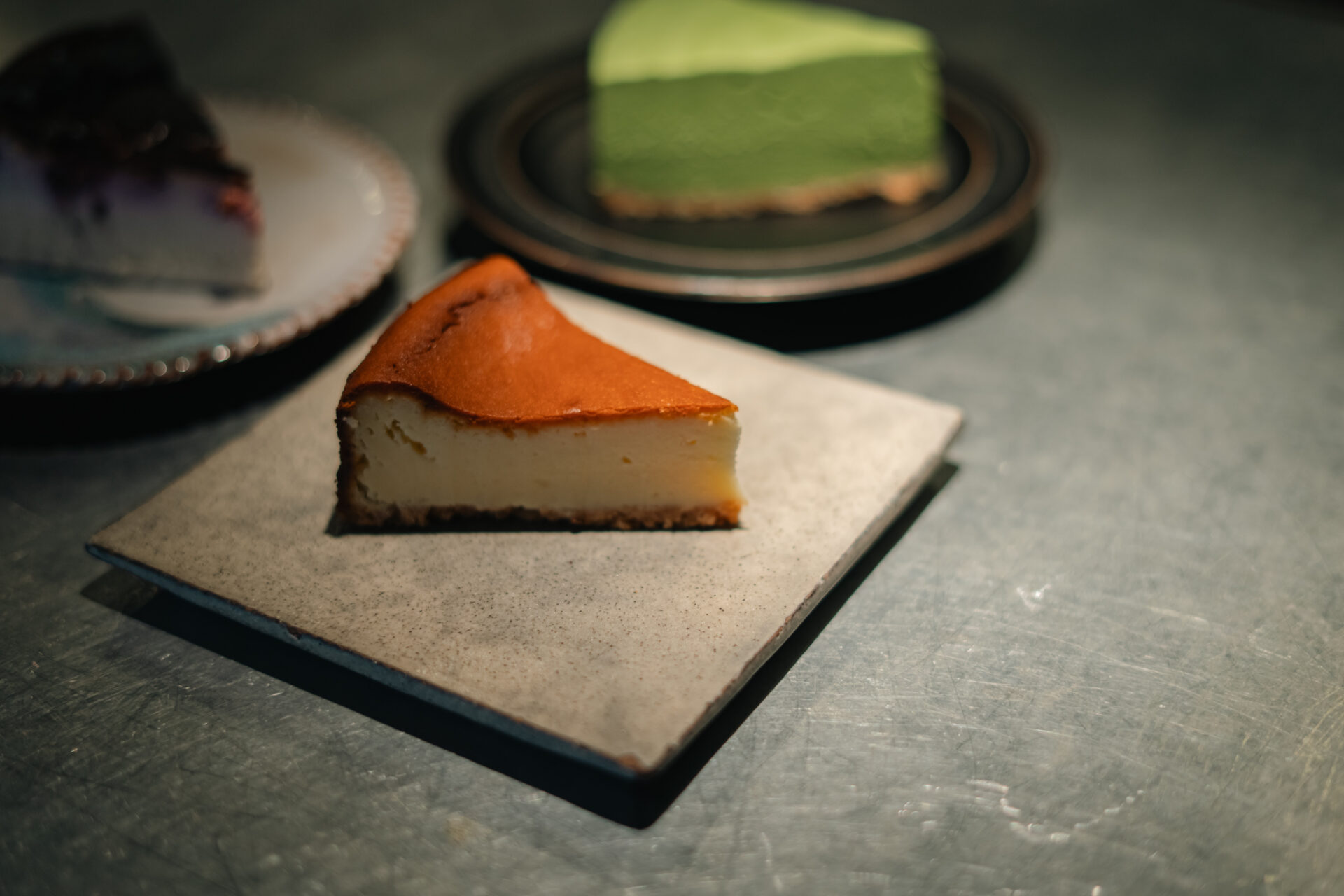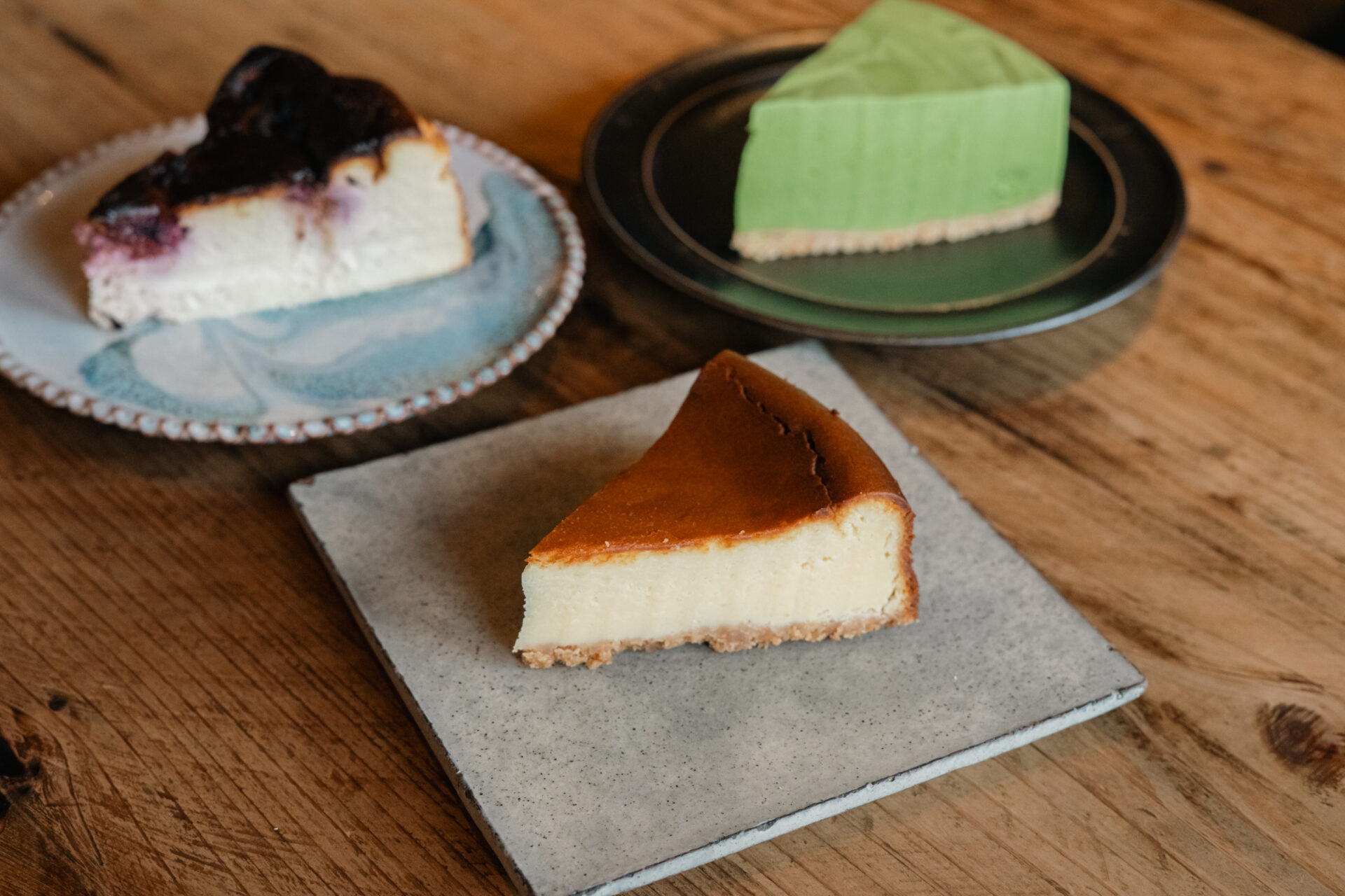 取材時にはベイクドチーズと朝宮抹茶レアチーズとラズベリーバスクチーズのケーキをいただきました。ふわふわと軽い食感のものから、しっかりとした密度を感じるものまで、チーズの特徴に合わせて表情はさまざまです。思わず「美味しい!」とフォークを持つ手が、あちこちとお皿を行き来してしまいました。