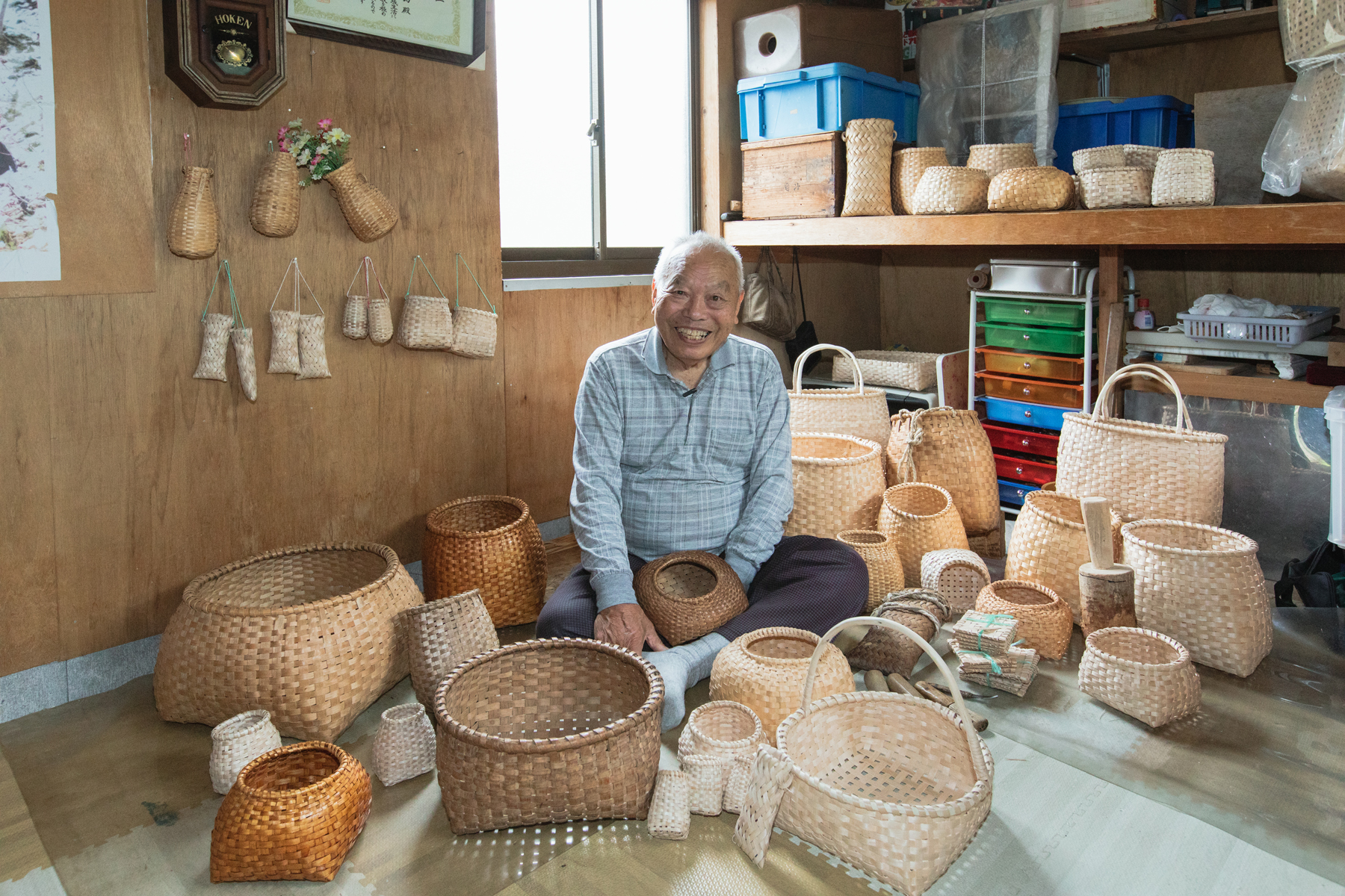 太々野㓛さん。小原村出身で幼い頃からカゴ作りをされてきました。