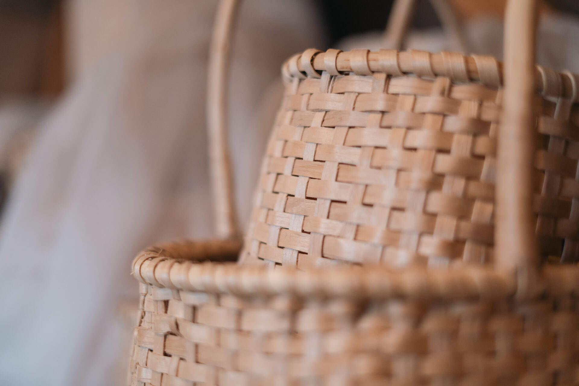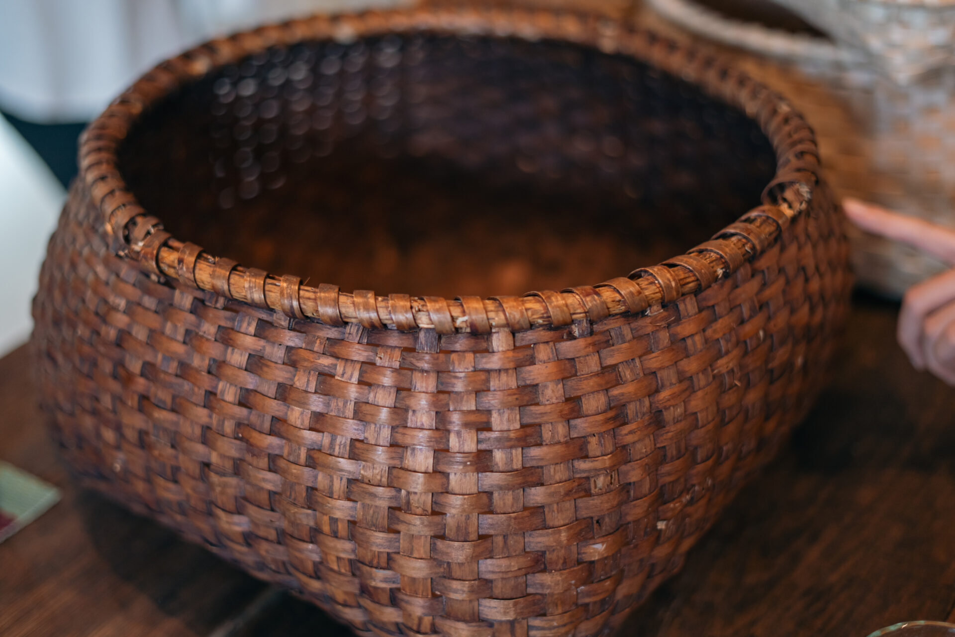 実際に触ると、とても硬く、ぐっと押した程度ではビクともしません。かと言ってカゴ自体に厚みがあるわけでもない。耐久力があるのに納得です。なんと古い物だと100年以上経っても平気で使うことが可能なのだとか!