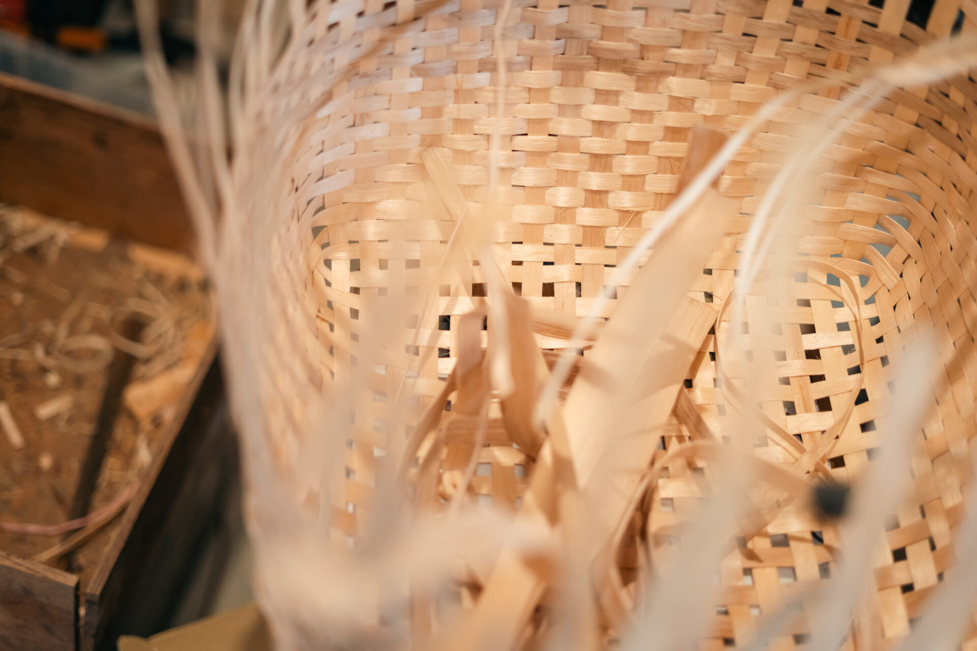 木だから、だけでなく、細かなハゼの構造のお陰で、より耐久性に優れたカゴができるのですね。