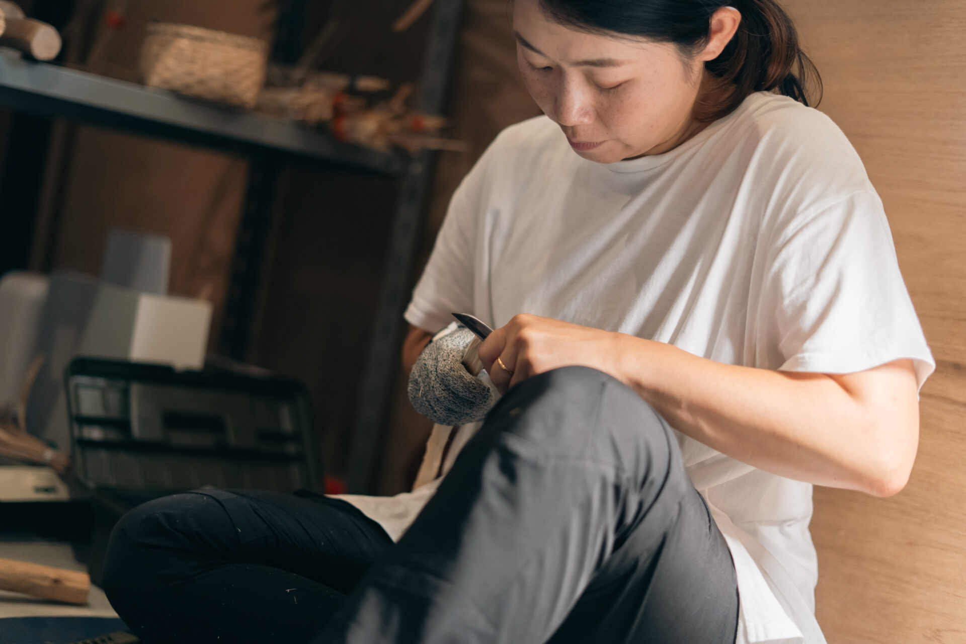 そう話すのは、荒井恵梨子さん。現在、複数の仕事をしながらも、小原かご作りの職人として製作・販売をされています。