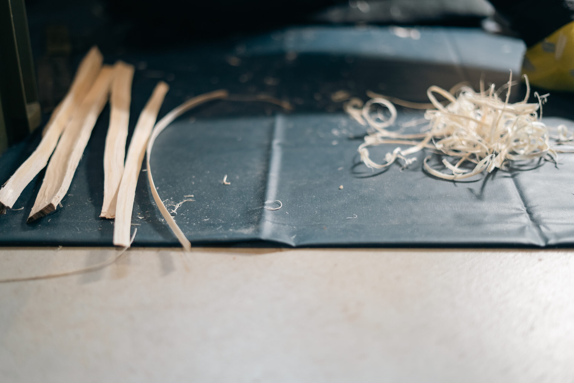 「このハゼの特徴は、片側は平面に削るんですけど、表に来る側は若干かまぼこ型になるように削るんですよ。そうすることで縁が薄くて真ん中が厚みのあるしっかりした材ができるので、カゴにした時の強度が良くなるんです。」